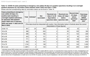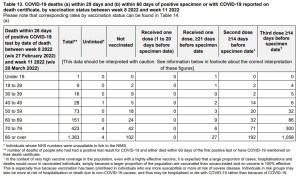 V državah, kjer spremljajo kovid primere ločeno za “cepljene” in “necepljene”, beležijo več kovidnih hospitalizacij in smrti pri “cepljenih” kot pri “necepljenih”, tako v absolutnih številkah, kot tudi relativno. Ena takšnih držav je Anglija. Žal so po uradnih oblasteh tudi “anticepilski teoretiki zarote” prenehali objavljati precej bolj pregledne grafe, zato prikazujem tabelo iz uradnega poročila. Tudi številke so dovolj zgovorne.