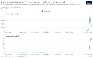 Slika: kovidne okužbe in kovidne smrti v Hong Kongu